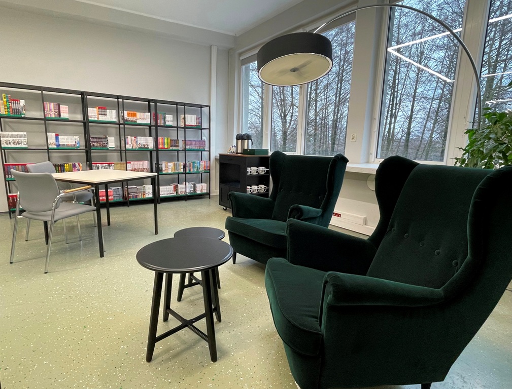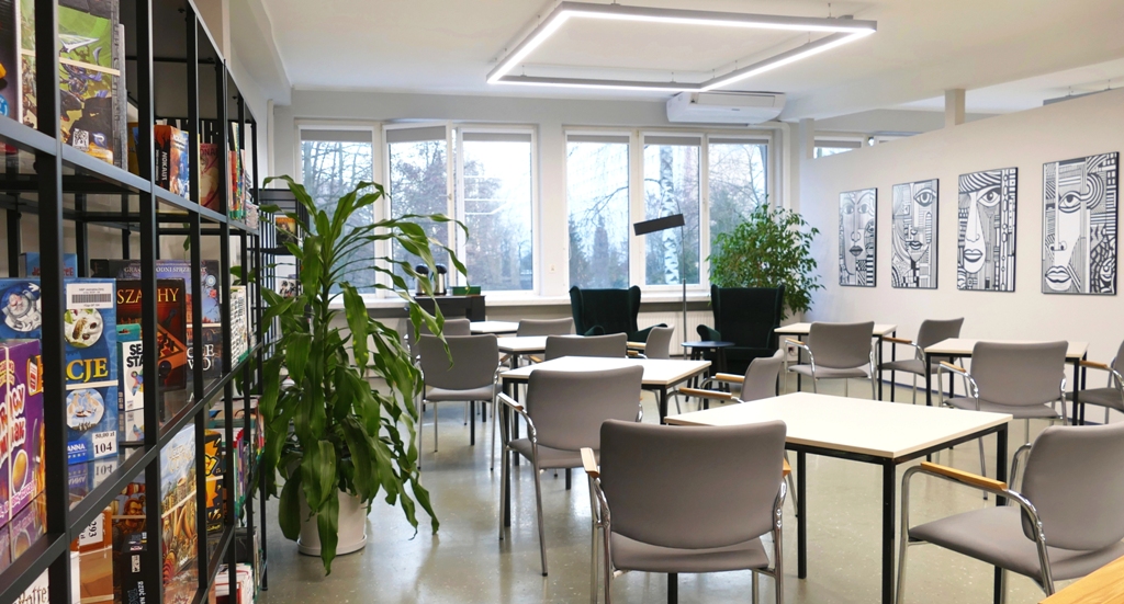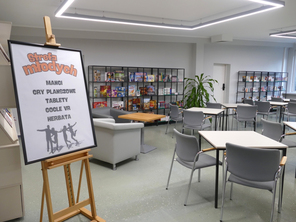 Czytelnia dysponuje strefą przyjazną dla młodzieży. Można skorzystać z gier planszowych, mang, tabletów i gogli VR.