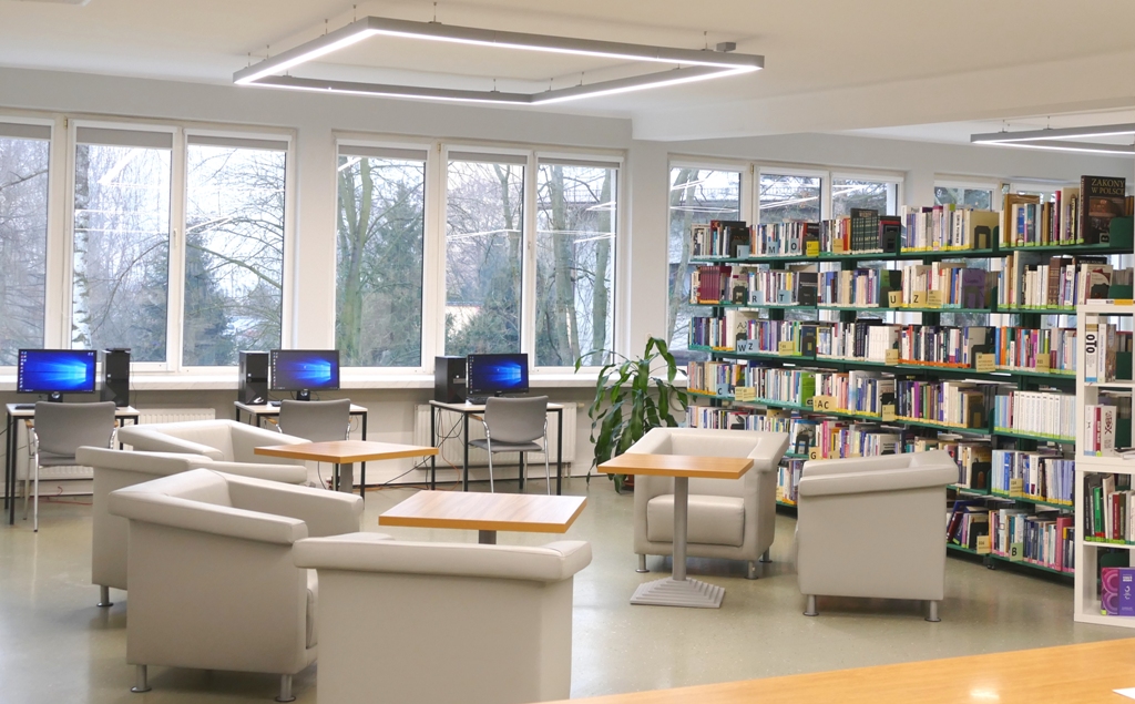 Do dyspozycji czytelników są 4 stanowiska komputerowe z dostępem do Internetu, edytorów tekstowych oraz drukarki i jedno stanowisko komputerowe z cyfrowymi zasobami Biblioteki Narodowej ACADEMICA.